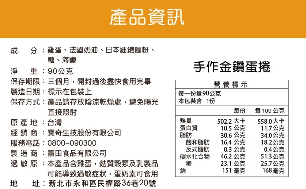● 採用頂級原料製作,法國 AO P認證手工發酵無鹽奶油、金盞花飼養機能蛋、日本細緻奶香麵粉、鹽界魚子醬法國鹽之花,成就了 6 層厚實口感不掉屑的 5.5 公分手作蛋捲。