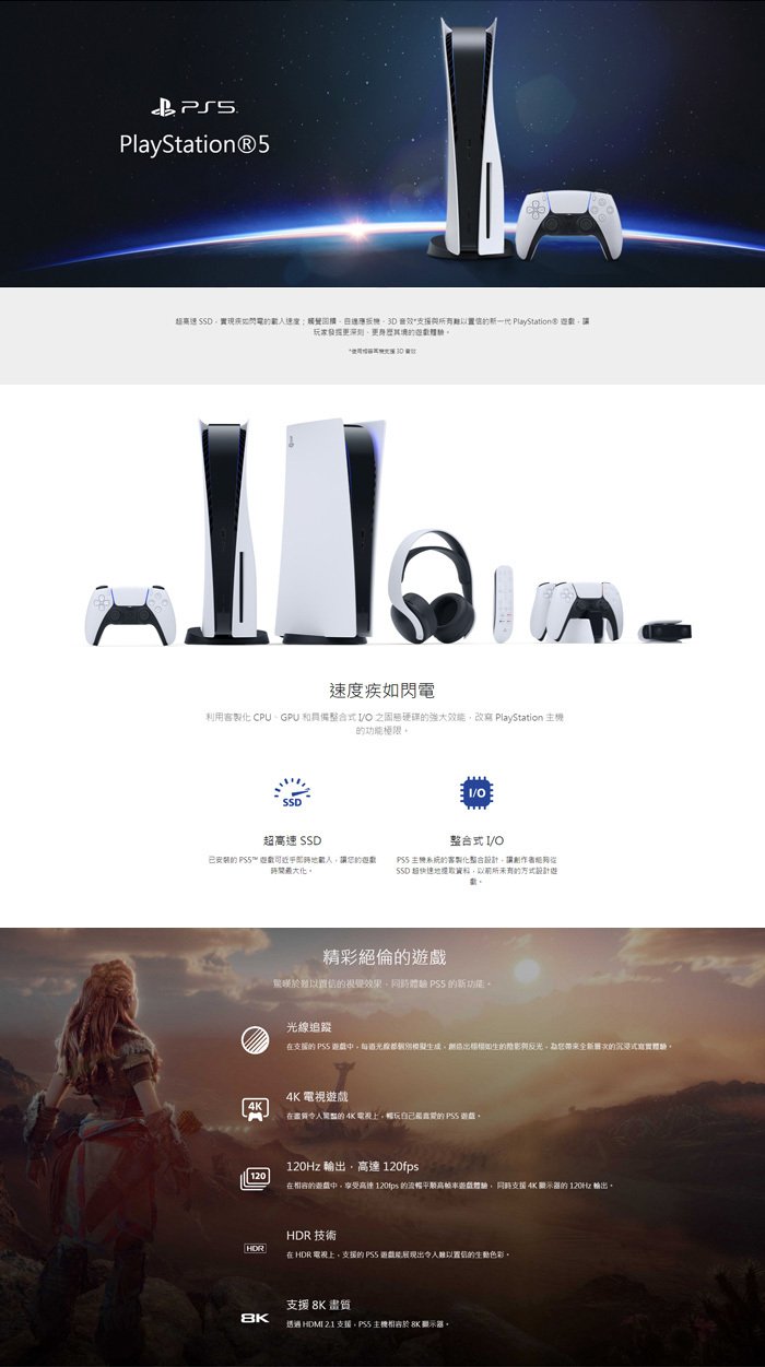PS5 光碟版主機(包含 PS5主機 配備Ultra HD Blu-ray光碟機 ×1、 PS5 DualSense™ 無線控制器 ×1)