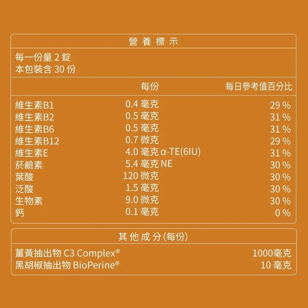 ● 吸收加倍|薑黃素+胡椒鹼黃金配方,激增20倍生物利用率。