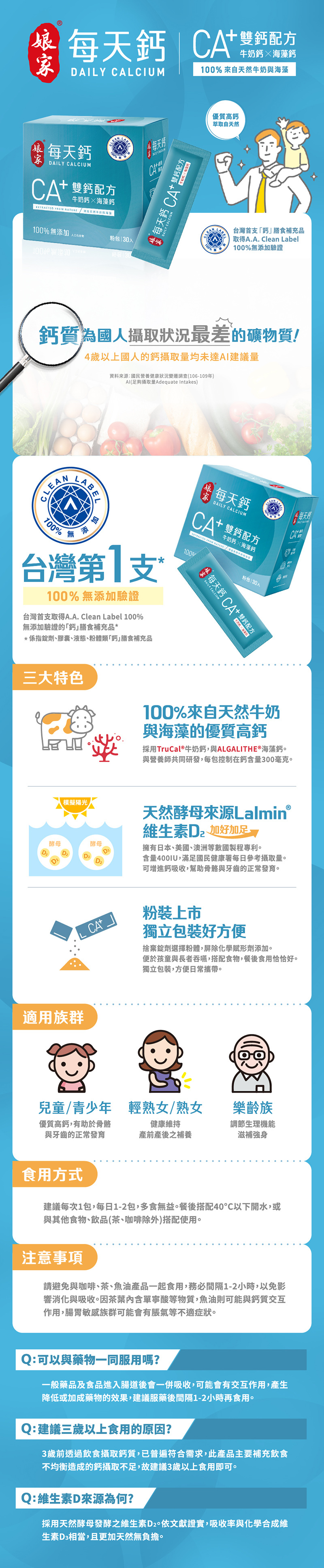● 首支 100% 無添加驗證「鈣」膳食補充。