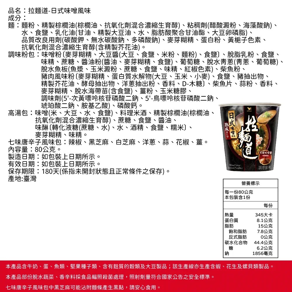【拉麵道】日式味噌(杯)80gX12碗/箱