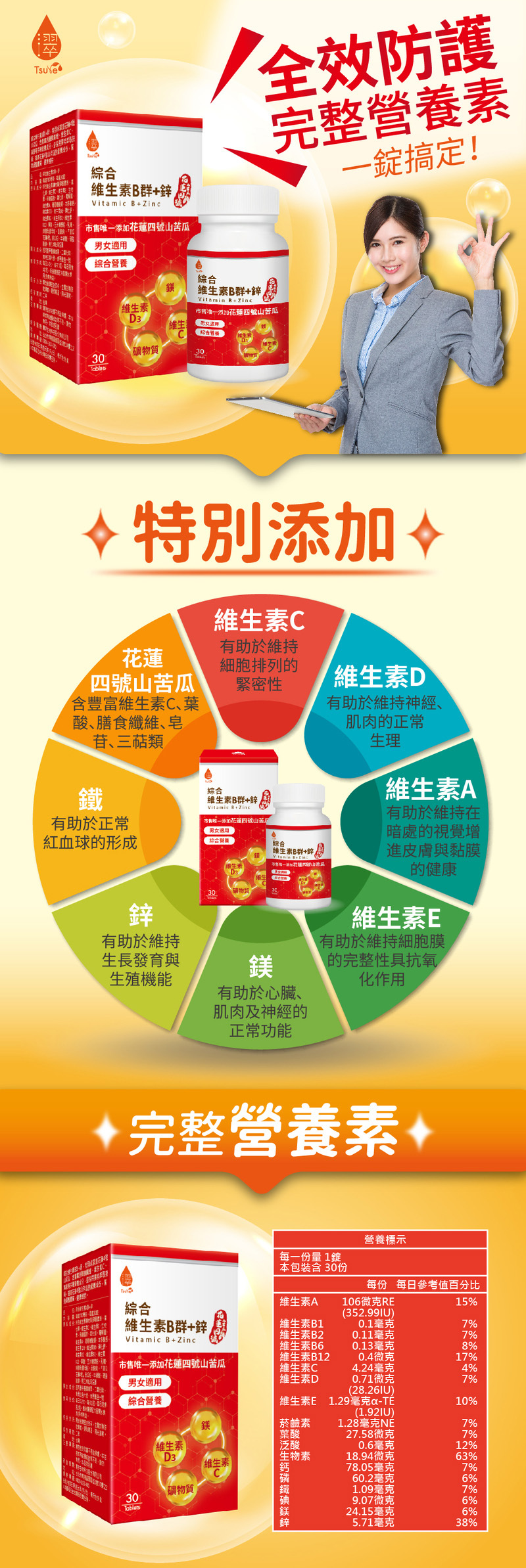 | 商品名稱 | 【日濢Tsuie】綜合維生素B群+鋅(30錠/盒) |