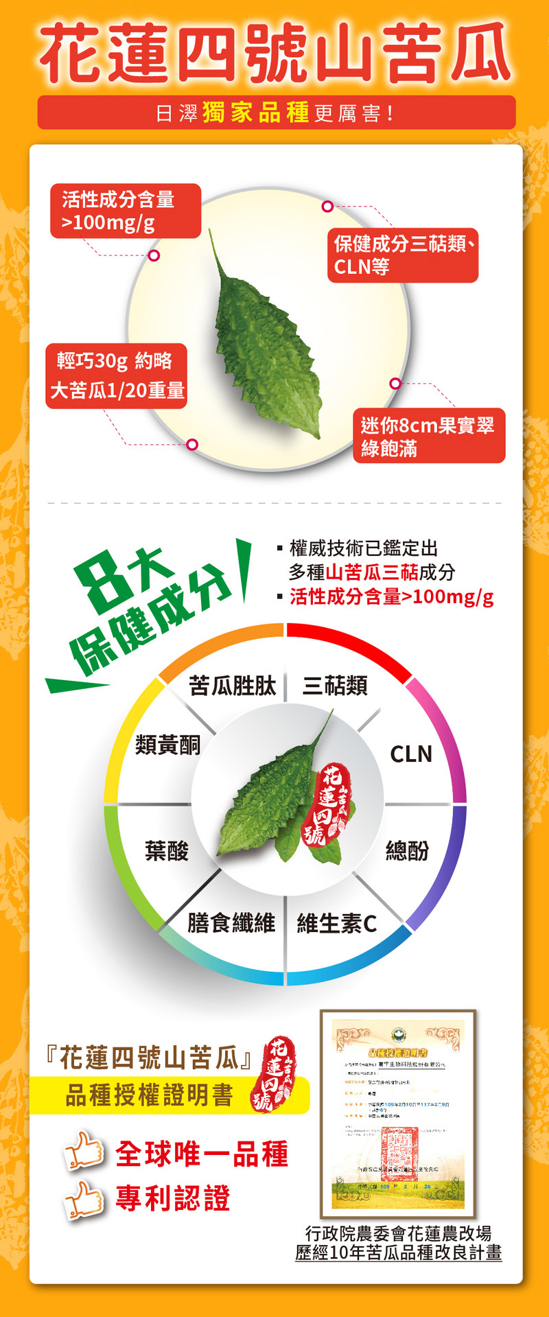 | 商品成分 | 綜合維生素礦物質(磷酸氫鈣、氧化鎂、維生素C、維生素E、生物素、菸鹼醯胺、氧化鋅、電解鐵、維生素A、葡萄糖酸銅、本多酸鈣、維生素 D3、維生素B6、碘化鉀、維生素B2 、維生素B1、維生素B12、葉酸、玉米糖漿粉、乳糖、鋅酵母(酵母粉、硫酸鋅)、『苦瓜花蓮4號』苦瓜粉、牛磺酸、硬脂酸鎂、聚乙烯吡咯烷酮 |