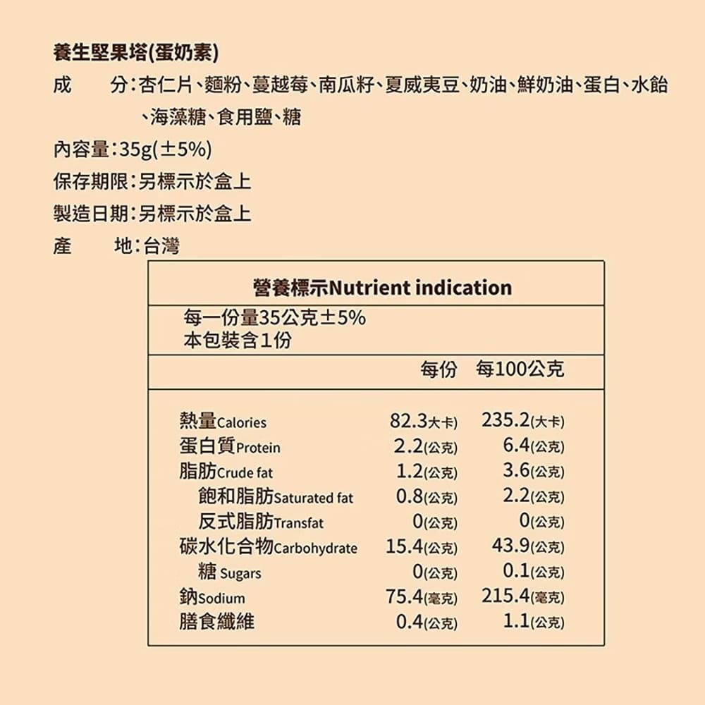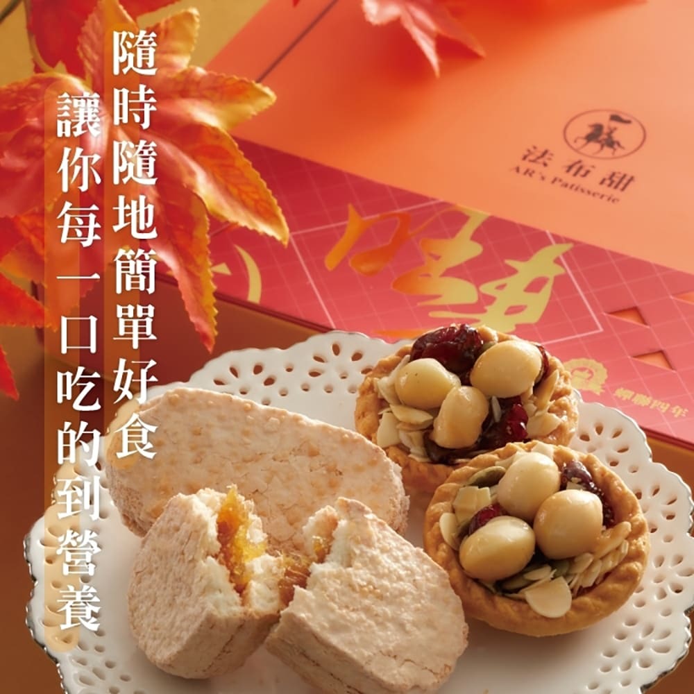 ● 內容物:堅果塔35g±5%x6+馬卡龍鳳梨酥25g±5%x6/盒。