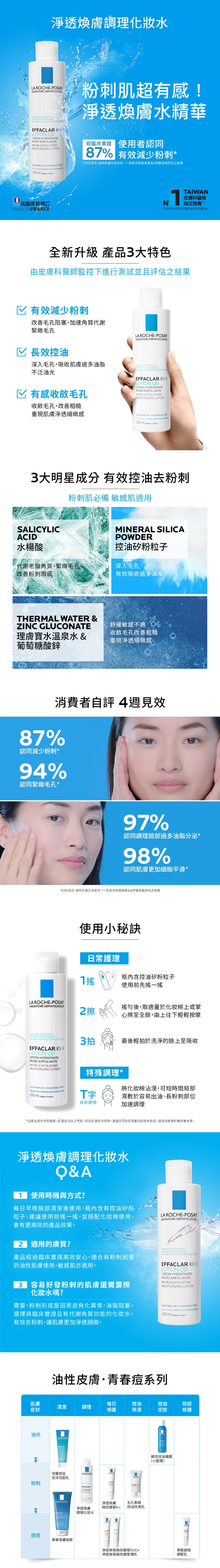 ●粉刺肌專用化妝水含控油矽粉粒子,97%有感調理臉部過多油脂*,改善臉出油現象。
