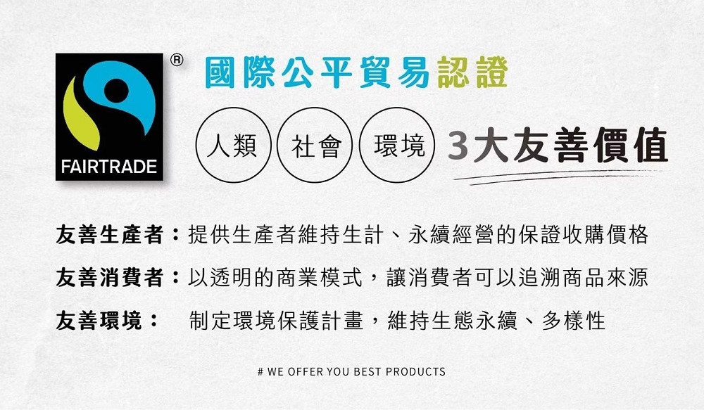 ● 國際公平貿易認證。