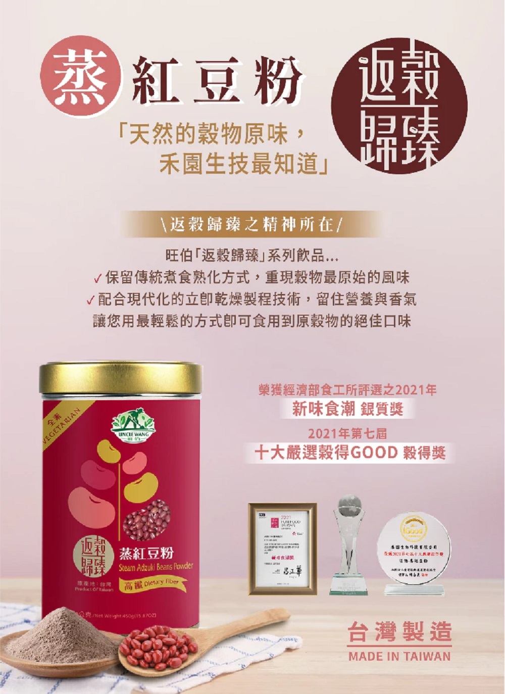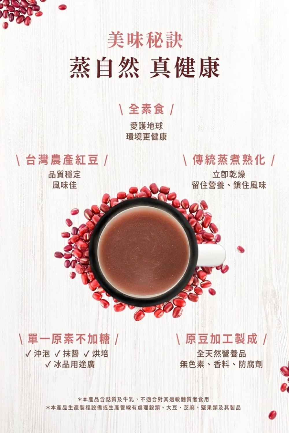 ● 『蒸』煮不但保留紅豆的營養元素,立即乾燥更能鎖住紅豆香氣,讓營養不流失。