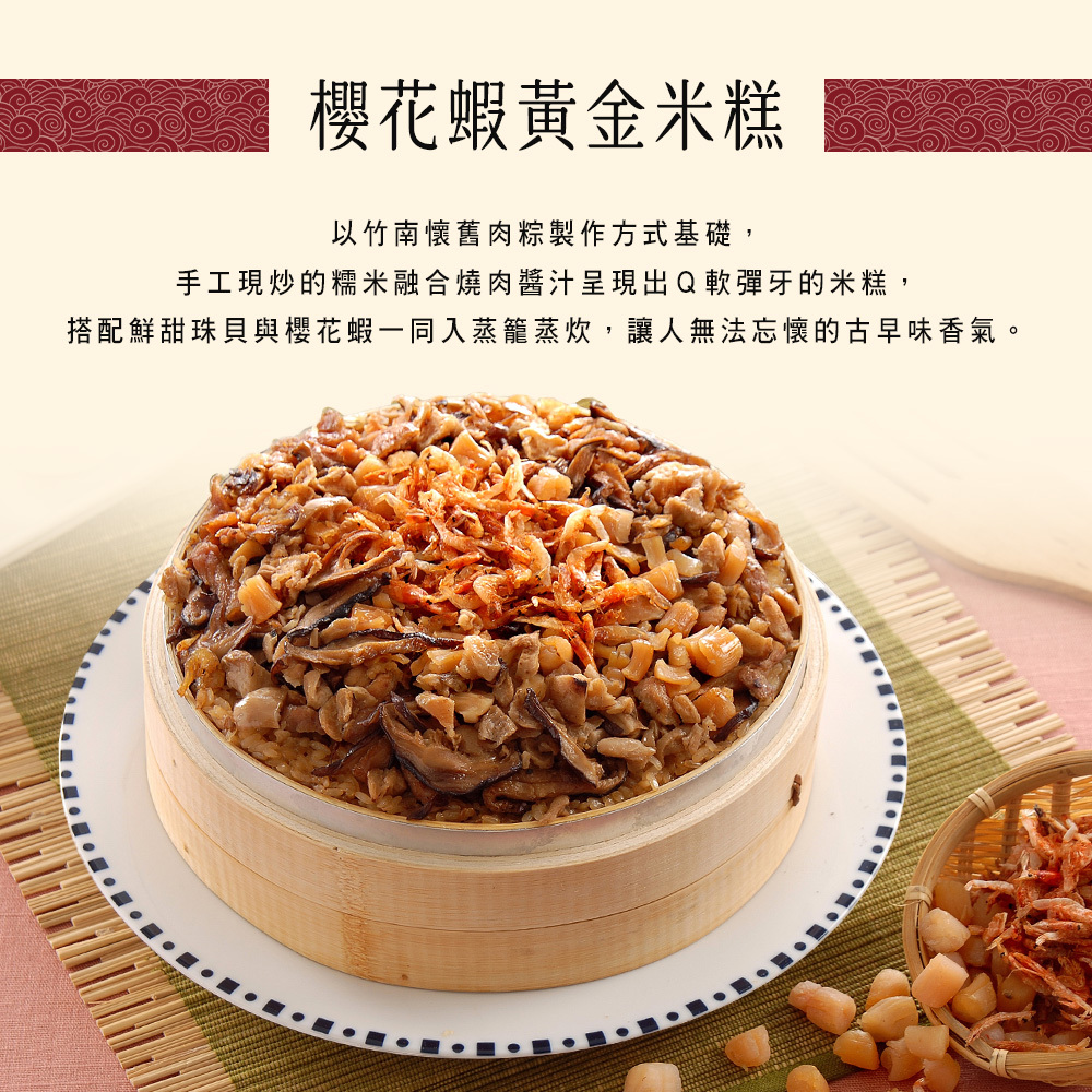【竹南懷舊】年菜3件組D組(雙菇清燉鮮雞湯2400g+櫻花蝦黃金米糕800g+鴻運富貴東坡肉500g)[低溫配送]