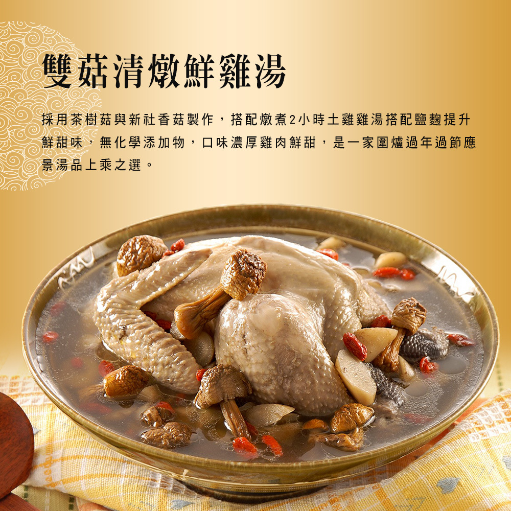 商品組合/規格:年菜兩件組【竹南懷舊】雙菇清燉鮮雞湯+極品傳香滷豬腳(年菜/圍爐)