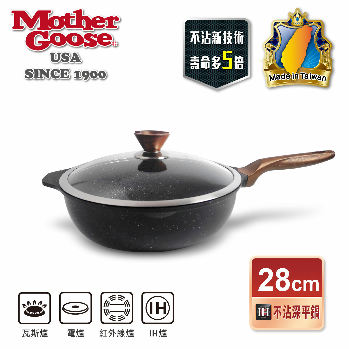 【美國MotherGoose 鵝媽媽】皮克超銀石IH導磁超硬不沾鍋深平底鍋28cm