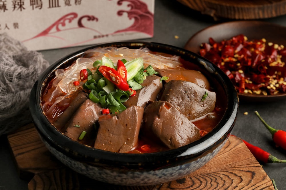 採用雞骨與正四川大紅袍、重慶青花椒以及秘制數十種漢方辛香料中藥配方熬煮而成的麻辣湯底,香醇濃郁,獨家恆溫熟成滷製技術,使鴨血Q彈滑嫩、飽滿多汁、香辣入味,採用高溫高壓滅菌技術 絕無防腐劑的常溫調理包,方便料理的好滋味,一個人在家也能簡單地享受美味的麻辣鴨血。