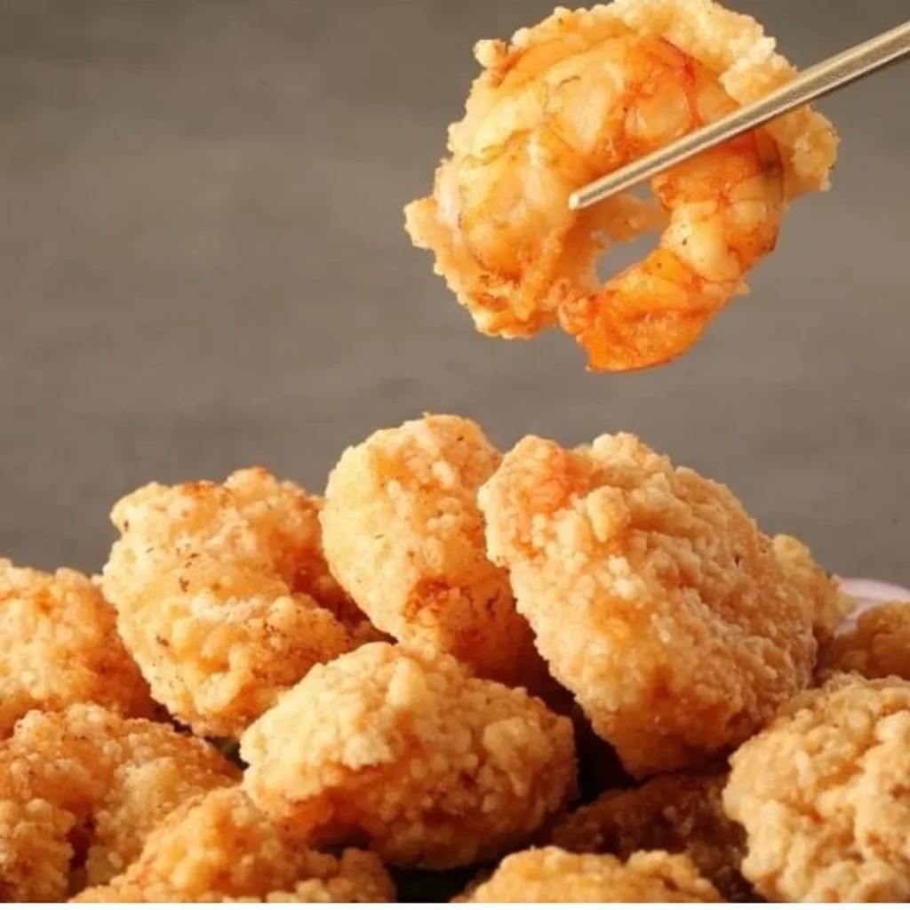 ● 已經裹粉預炸飽滿鮮甜的蝦仁。