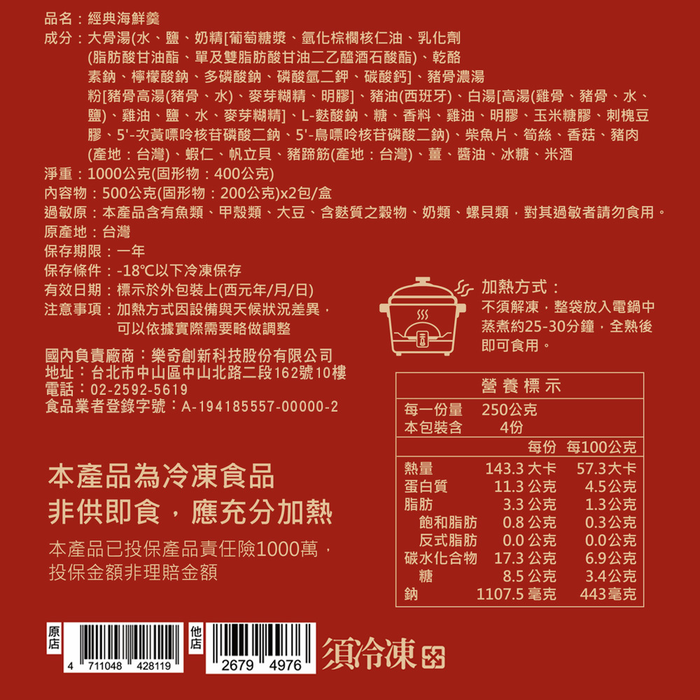 以頂級海鮮精心熬製,濃郁鮮香,口感豐富,每一口都是奢華享受。讓您的味蕾瞬間迸發,彷彿置身海鮮盛宴!