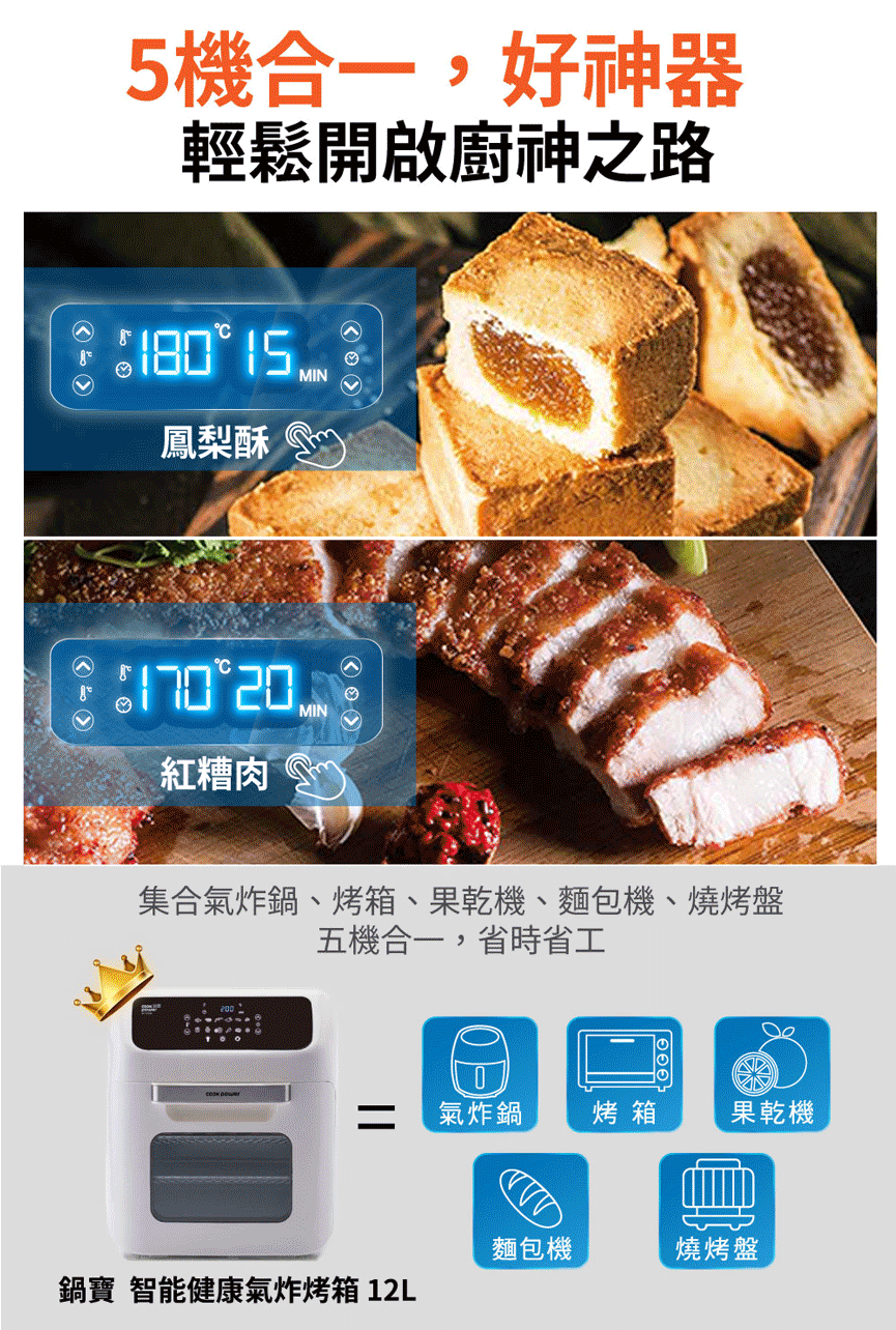 品名:【鍋寶】智能健康氣炸烤箱 12L