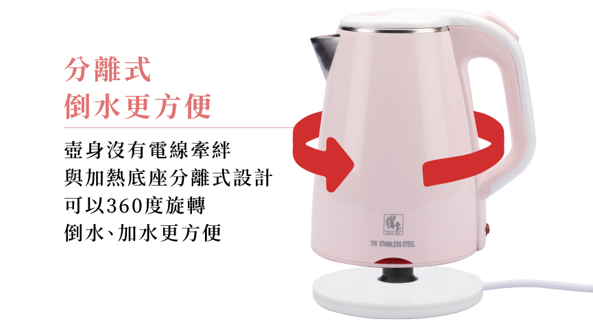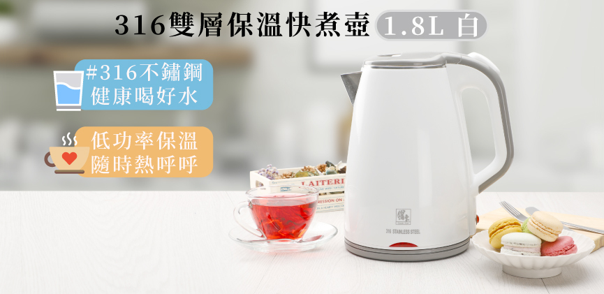 316醫療級不鏽鋼內膽,煮水、泡茶更安心。
