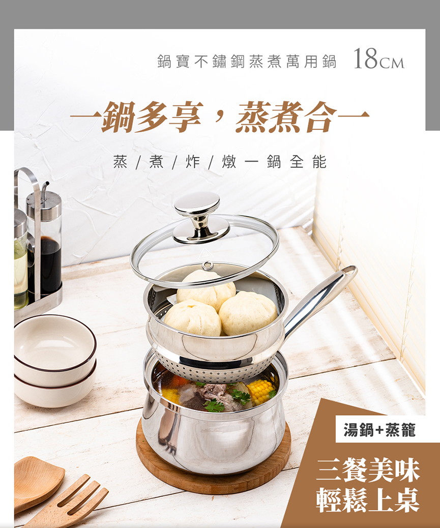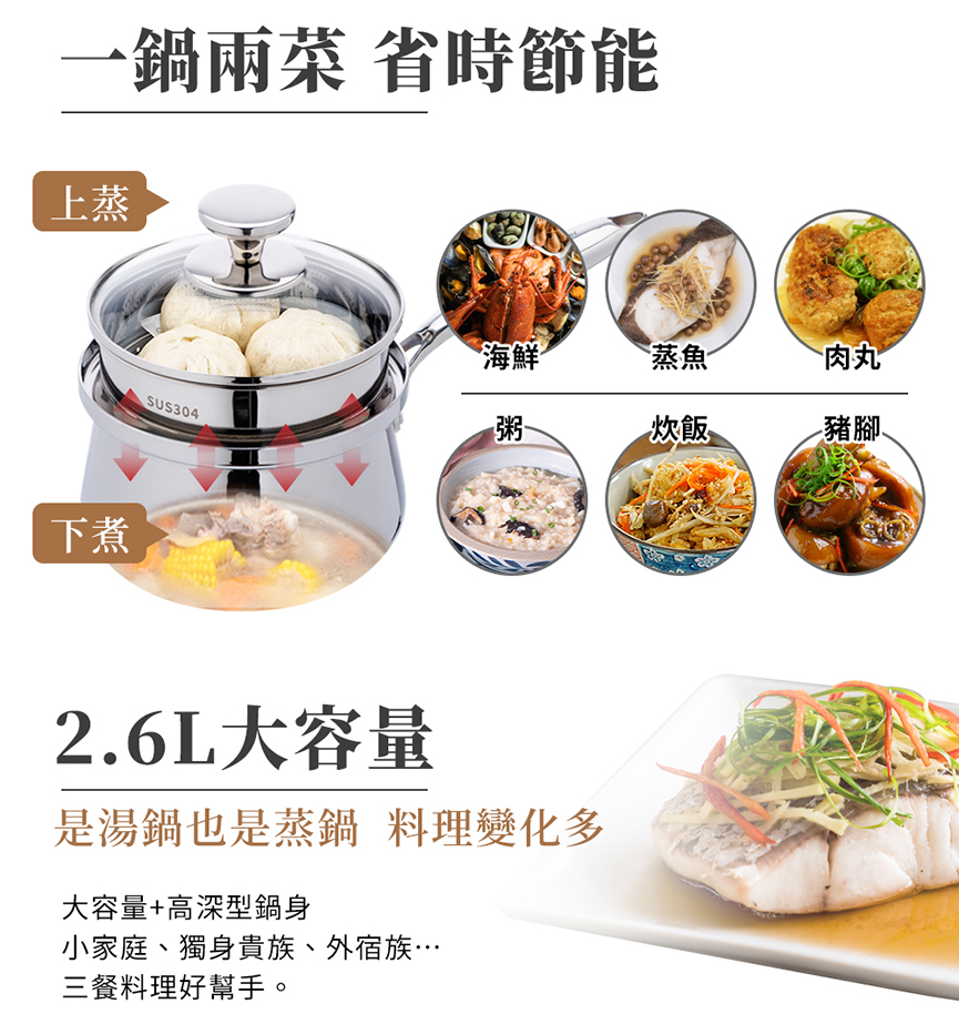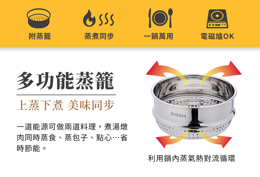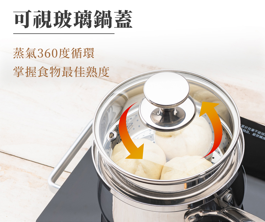 ● 高深型鍋身,蒸、煮、炸、燉,一鍋萬用。