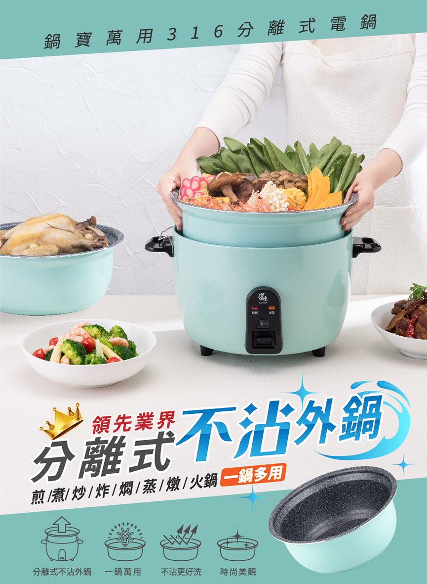 品名:【鍋寶】萬用316分離式電鍋(11人份)雙鍋組--湖水綠