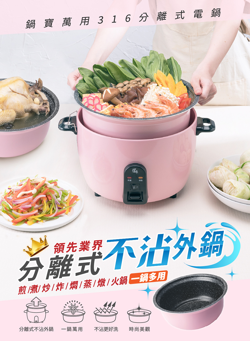 品名:【鍋寶】萬用316分離式電鍋(11人份)-茶花粉