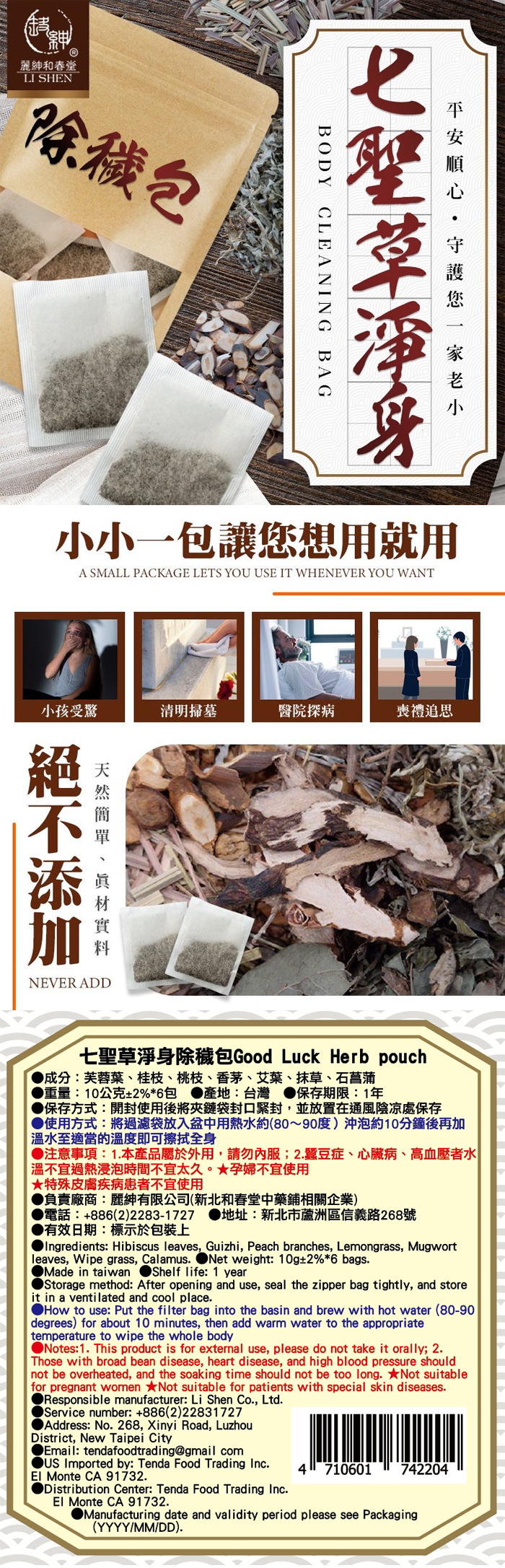【麗紳和春堂】七聖草淨身除穢包(6包/袋)x5袋