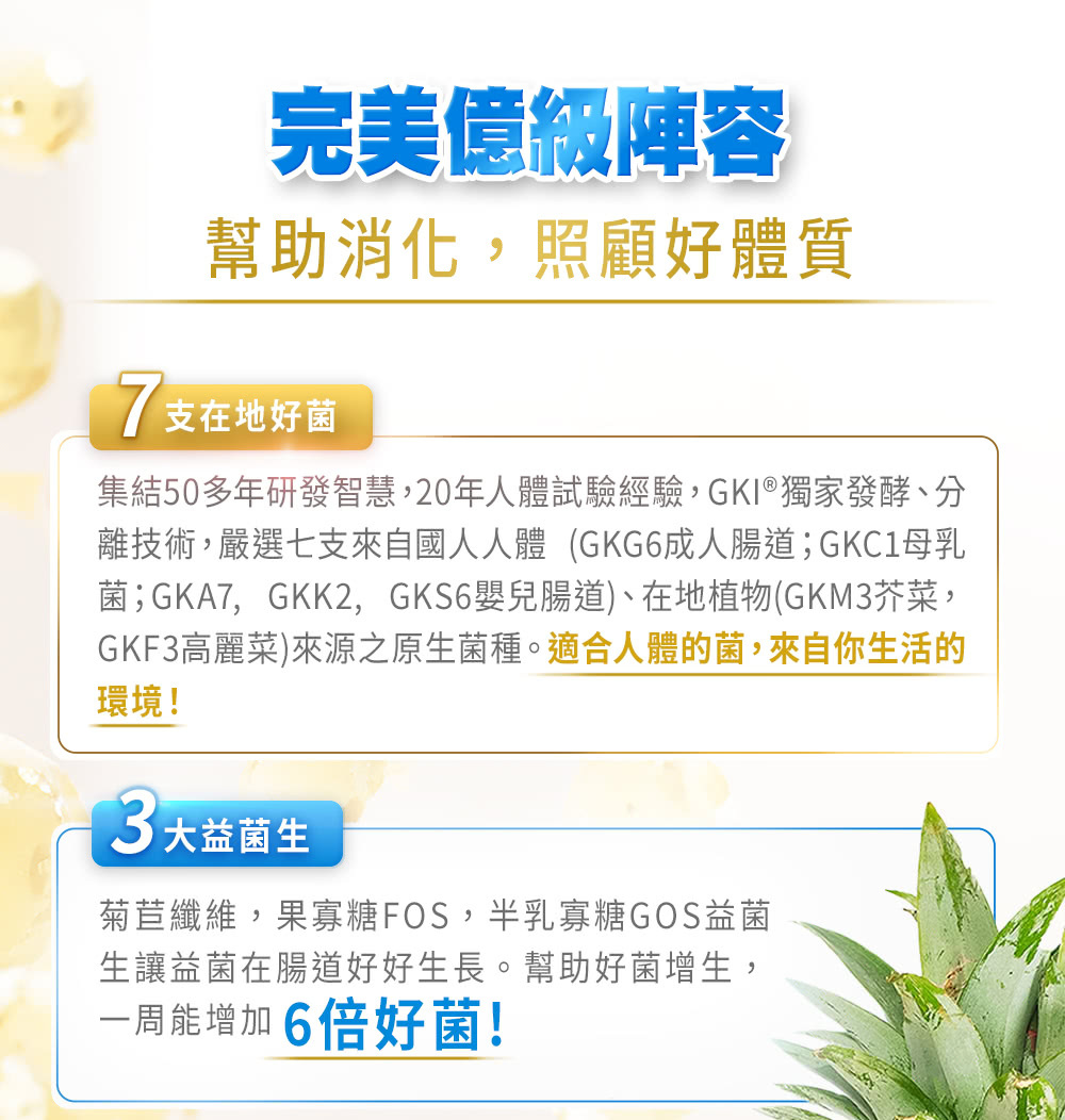 ◆珍貴母乳菌 益生菌權威推薦!完整7大活菌+滿滿纖維+鳳梨酵素