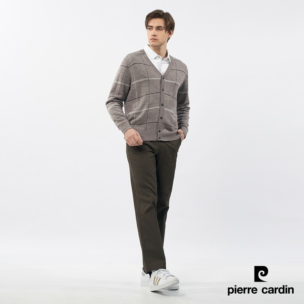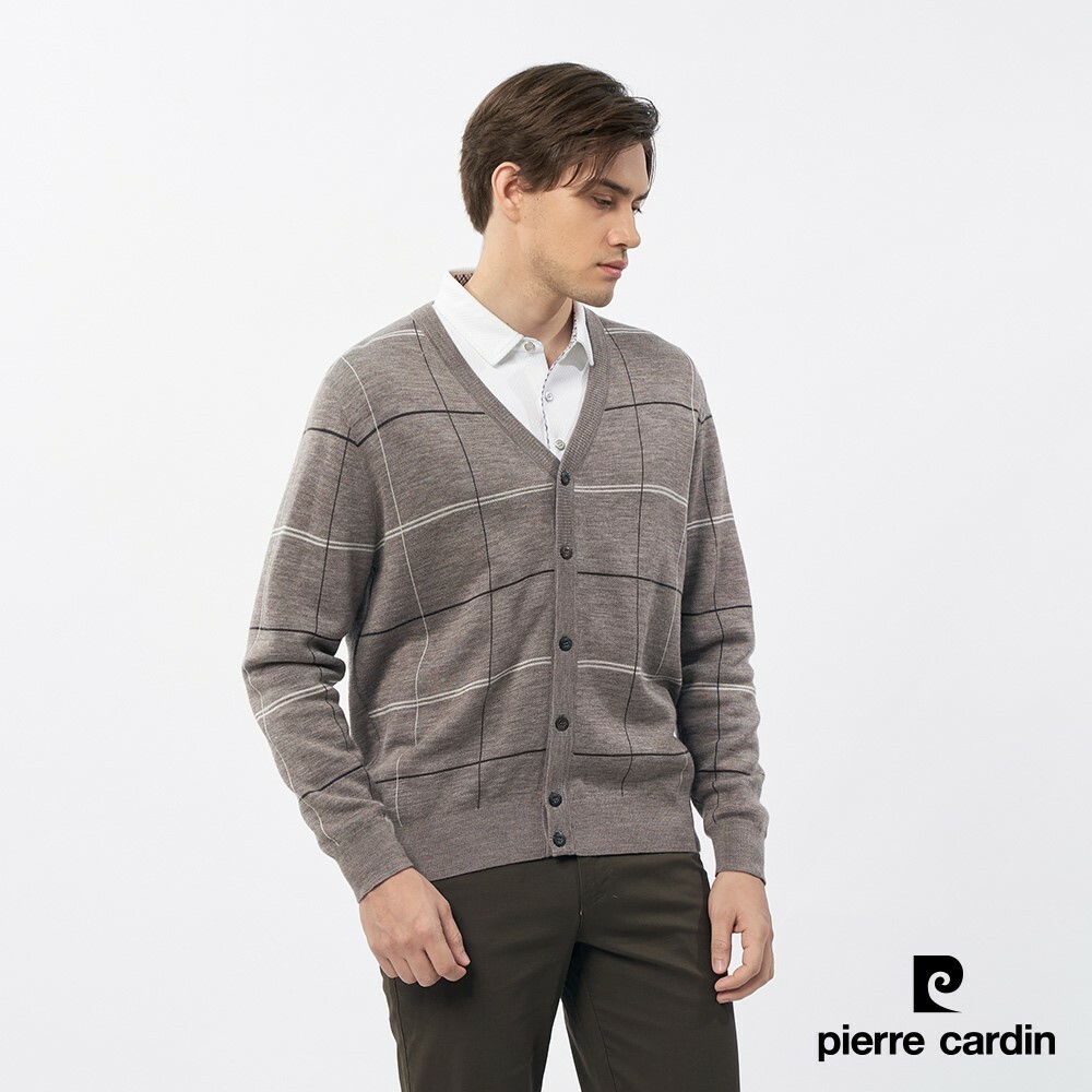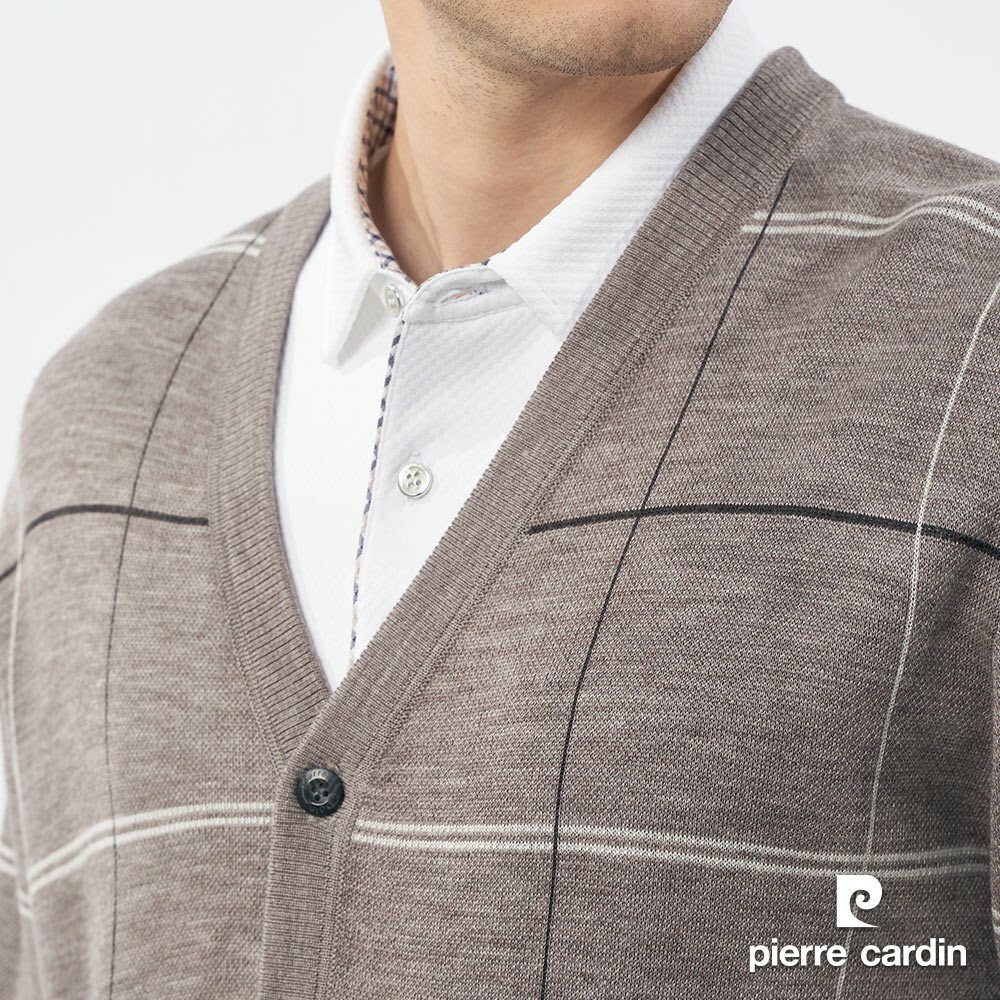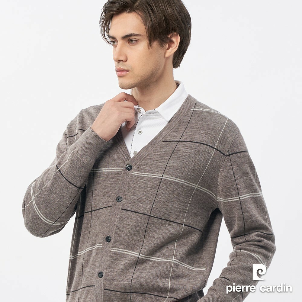 (遠雄集團員購專屬)【皮爾卡登】羊毛混紡V領開襟毛衣外套-棕色(5235476-87)
